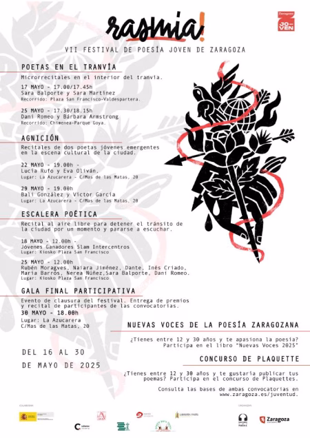 El Festival de Poesía Joven Rasmia! del Ayuntamiento de Zaragoza llenará un año más las calles de recitales y versos de jóvenes poetas emergentes, en una nueva edición que comienza este fin de semana, en la que también habrá talleres, concursos y una gran Gala Final con entrega de premios. Hasta el 30 de mayo, […]