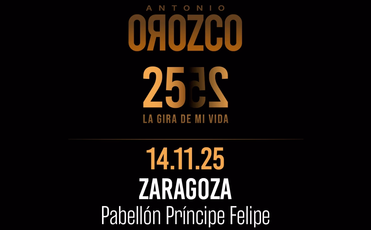 Pabellón Príncipe Felipe Avda. Cesáreo Alierta, 120, Zaragoza, EspañaCONCIERTO DE ANTONIO OROZCO «La Gira de Mi Vida ». Tendrá lugar el viernes 14 de noviembre de 2025 en el Pabellón «Príncipe Felipe». Antonio Orozco regresa a los escenarios con La Gira de Mi Vida, un proyecto que presentará las canciones de su próximo álbum y conmemora sus 25 años de trayectoria musical. Este