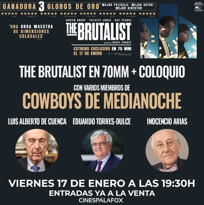 Para celebrar este estreno, visitarán los Cines Palafox Luis Alberto de Cuenca, Eduardo Torres-Dulce e Inocencio Arias, miembros y colaboradores habituales del programa de radio Cowboys de Medianoche que dirige Luis Herrero. Una oportunidad única para celebrar el estreno del año en un evento en el que mantendrán un coloquio al terminar la proyección con los espectadores. Las entradas para el evento se pueden comprar desde ya en la web de Cines Palafox