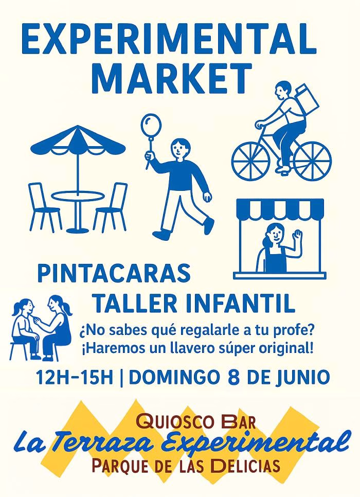 En Terraza Experimental del parque Delicias el próximo 8 de junio, de 12:00 a 15:00h, han preparado una jornada familiar con un market al aire libre y actividades creativas para peques. Será un espacio para disfrutar, crear y compartir en familia.