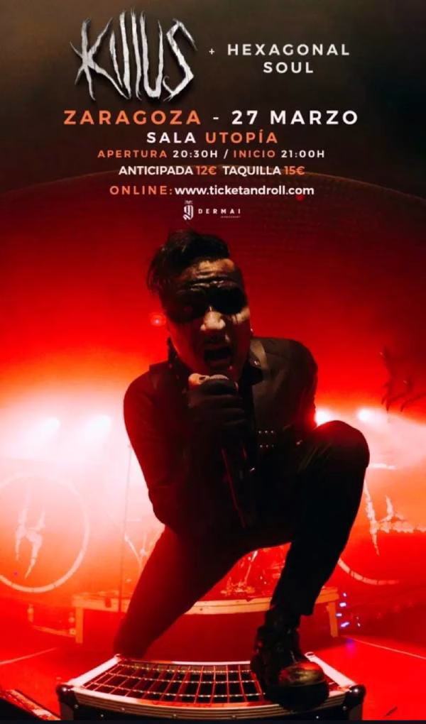 Segunda parte de la gira «XXV YEARS FEEDING THE MONSTER» de los industriales KILLUS, que los llevará a las ciudades de Zaragoza (27/03), Oviedo (28/03), Vigo (29/03) y Bilbao (25/04). Para esta ocasión estarán acompañados de la banda de deathcore de Zaragoza Hexagonal Soul.