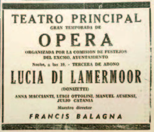 A lo largo de los años treinta del siglo XIX la música de Donizetti sonó regularmente en el Teatro Principal de Zaragoza -junto a Rossini en menor medida- y su contemporáneo Bellini. Oberturas de sus óperas, dúos, arias o tercetos se escucharon en el escenario del Coso incluso antes del estreno de ‘Lucia’, como así recogió la prensa zaragozana y la documentación del propio Teatro.