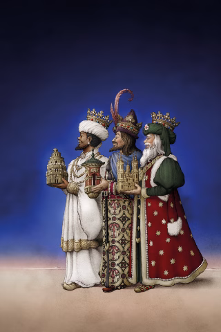 Por eso, a través de un descargable en la página web https://www.zaragoza.es/sede/portal/cultura/navidad/reyesmagos/descargas, quienes lo deseen podrán darle color a su propio cartel en la versión para pintar que ha habilitado el consistorio zaragozano. La imagen que describe “Oro, Incienso y Mirra”, título del desfile de este 2025, ha corrido a cargo de Óscar Sanmartín. Este ilustrador ha querido poner énfasis en los tres protagonistas de la noche mágica y en los tres elementos que van dentro de los cofres/relicarios que portan en sus manos. Estas pequeñas cajitas están inspiradas en el eje de la Navidad en la ciudad de Zaragoza en relación a las tres culturas: el cimborrio de La Seo, el Puente de los Cantautores del Parque Grande y la Basílica del Pilar.