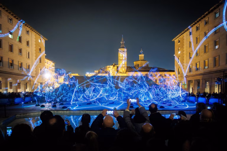 Esta iniciativa del Ayuntamiento de Zaragoza junto con Antídoto y que cuenta con la colaboración de Iberdrola y el Gobierno de Aragón consta de ocho puntos de referencia con intervenciones artísticas locales, nacionales e internacionales, que estarán activas el viernes 21 y el sábado 22, de 19:00 a 01:00 horas y el domingo de 19:00 a 23:00 horas. Esta propuesta cultural popular y familiar de primer nivel continúa ampliando el calendario del proyecto Plaza más Viva, gracias a este museo contemporáneo al aire libre. Los artistas fusionarán la luz y el arte en El Teatro Romano, la fachada del Colegio de Arquitectos, la Plaza de San Felipe, la Plaza del Justicia, la Plaza del Pilar con 2 intervenciones (En la propia bandeja y en la Fuente de la Hispanidad), la fuente de la Plaza de la Seo y el Puente de Piedra.
