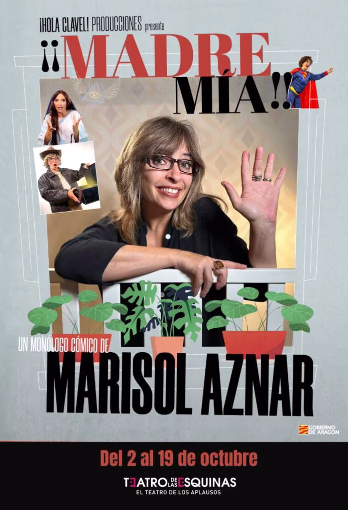 Marisol Aznar reflexiona sobre el papel de ser madre de sus hijas e hija de su madre, analiza los tipos de madre y los interpreta, que son muchos y variados, y con los cuales el público seguro va a conectar rápidamente. Y lo hace utilizando muchos elementos, el monólogo, canciones en directo, el vídeo y la participación del público con el que comenta, habla, pregunta y comparte momentos delirantes. ¿Qué tipo de madre te ha tocado?¿Cómo eran las madres de antes y cómo son la madres de ahora? ¿Hay algo que no le has confesado nunca a tu madre y desearías hacerlo? ¿Qué hubiera pasado si las protagonistas de la historia en vez de ser hombres aguerridos hubieran sido madres? ¿Está la Virgen María contenta de ser la madre de toda la humanidad? ¿Qué pensará la madre de Indiana Jones de la vida de su hijo? ¿Y la madre de Supermán? ¿Puede venir Rocío Jurado a cantar sobre este asunto? Todas estas preguntas y muchas más podrás encontrarlas en ¡¡MADRE MÍA!!