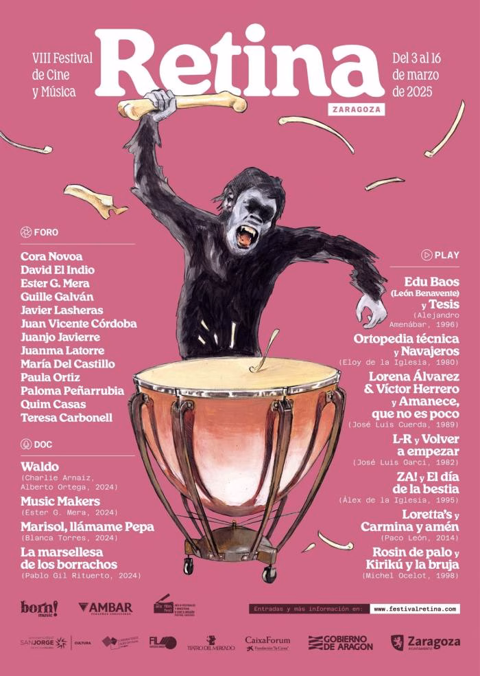 Del 3 al 16 de marzo, el Festival Retina apostará por el cine nacional a través de la mirada de músicos locales y nacionales, además de ofrecer charlas y debates sobre la relación entre la música y el séptimo arte. Impulsado por Born! Music con la colaboración del Ayuntamiento de Zaragoza, el evento ya presentó hace semanas su sección PLAY, que combina películas con música en directo. Ahora, completa su oferta con DOC, una ventana al documental musical, y FORO, un espacio de reflexión sobre el sonido en el cine contemporáneo. Estos segmentos consolidan su compromiso con la experimentación audiovisual y una experiencia inmersiva para el público.