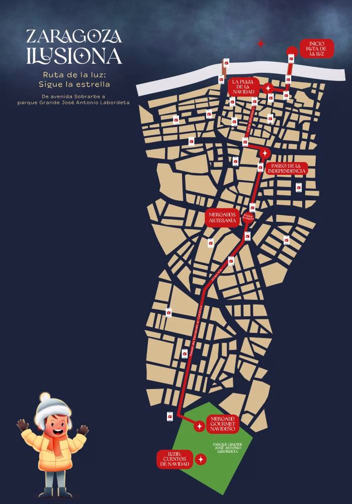 La ciudad de Zaragoza se llenará de magia esta Navidad con un espectacular corredor de luz que recorrerá más de 3,5 kilómetros, conectando el Arrabal con el parque José Antonio Labordeta. Las calles se vestirán de luces, creando un ambiente festivo que contagiará ilusión a todos los zaragozanos. En los distintos distritos de la ciudad, los puntos fotográficos permitirán capturar la belleza de esta decoración y la esencia navideña en cada rincón.