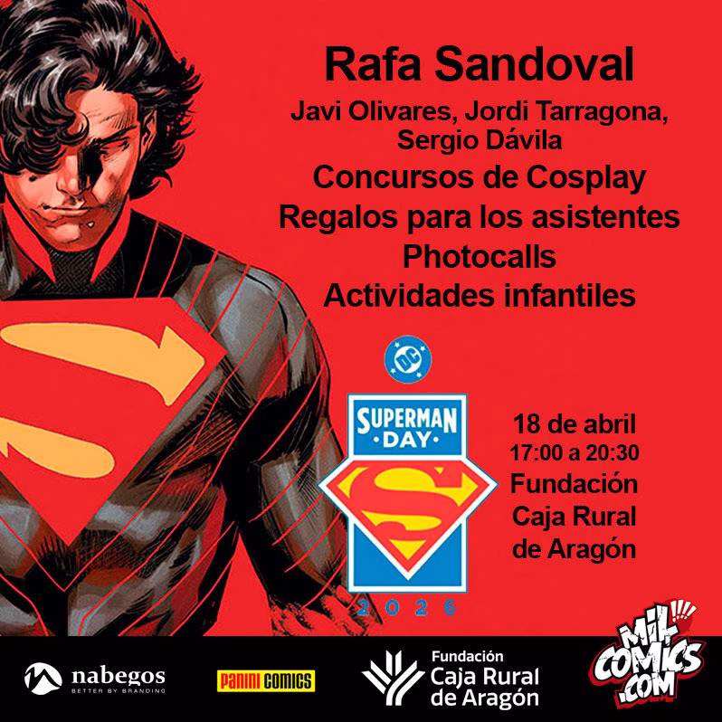 Zaragoza se prepara para volar alto este sábado, 18 de abril, con la celebración del Superman Day, una gran jornada organizada por Milcómics que convertirá el salón de actos de la Fundación Caja Rural de Aragón en el epicentro del universo DC en España. El evento, de entrada libre hasta completar aforo, reunirá durante más de tres horas a aficionados, familias y amantes del cómic en torno a uno de los grandes iconos de la cultura popular: Superman.