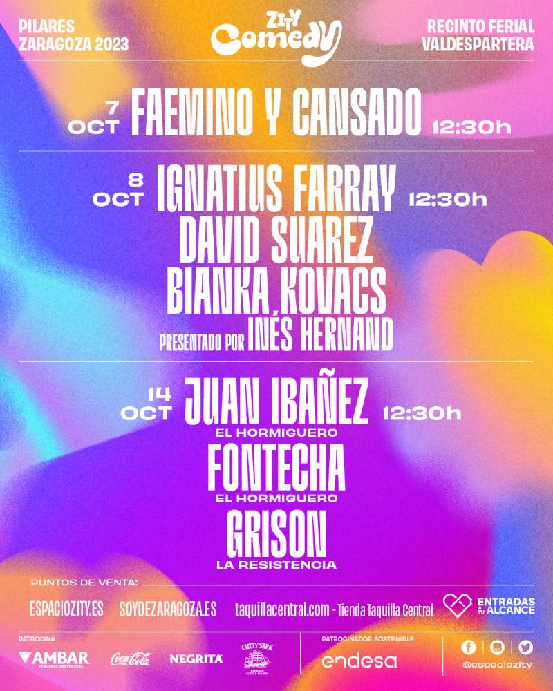 Este año el Zity sorprende con una gran novedad, Zity Comedy, una apuesta por el humor en el mediodía de los fines de semana de las Fiestas del Pilar. Algunos de los humoristas más conocidos de nuestros país se darán cita en este nuevo espacio para brindar unas horas de risas al público zaragozano.